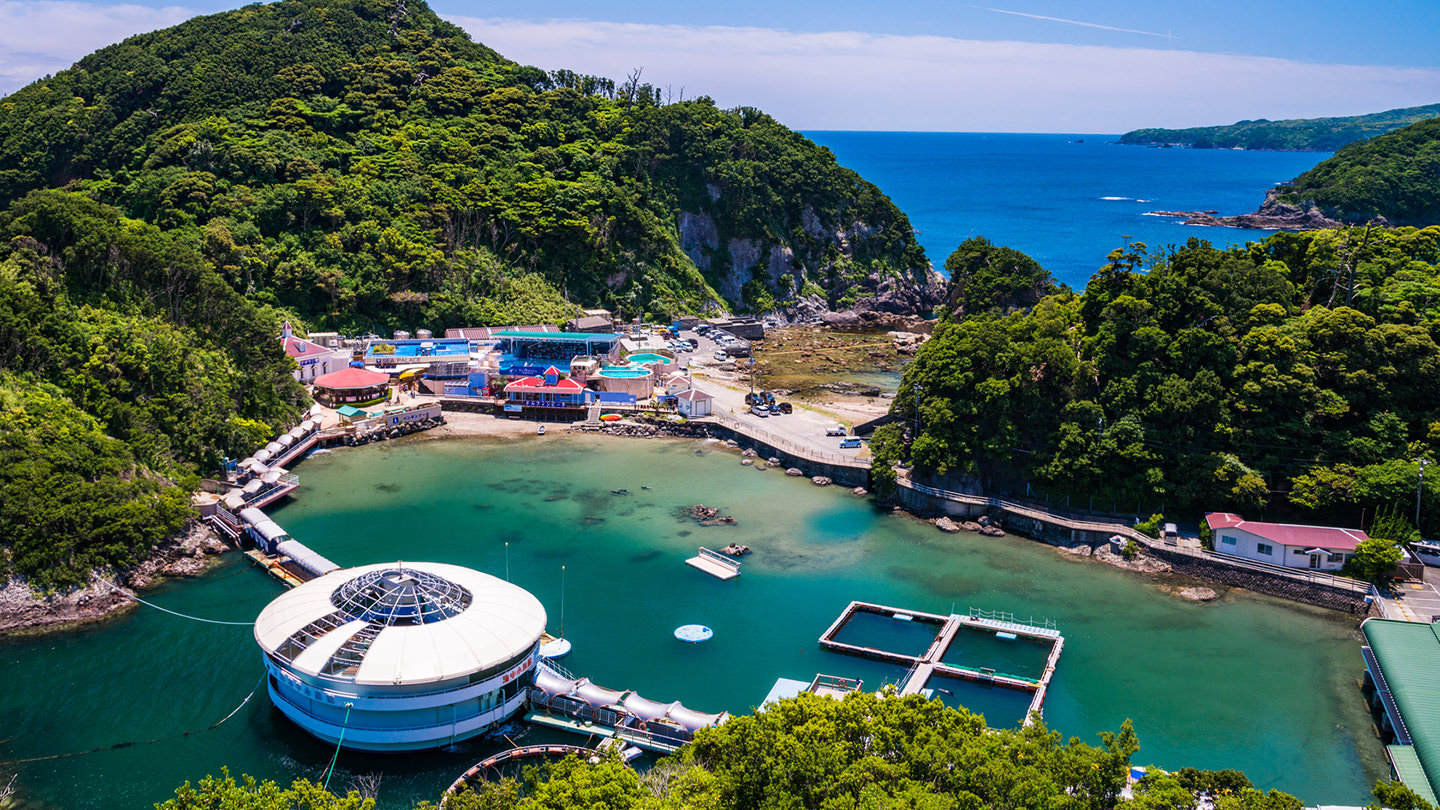 下田湾の自然の入り江を利用した、見るだけでなくさまざまな体験が可能な「下田海中水族館」。